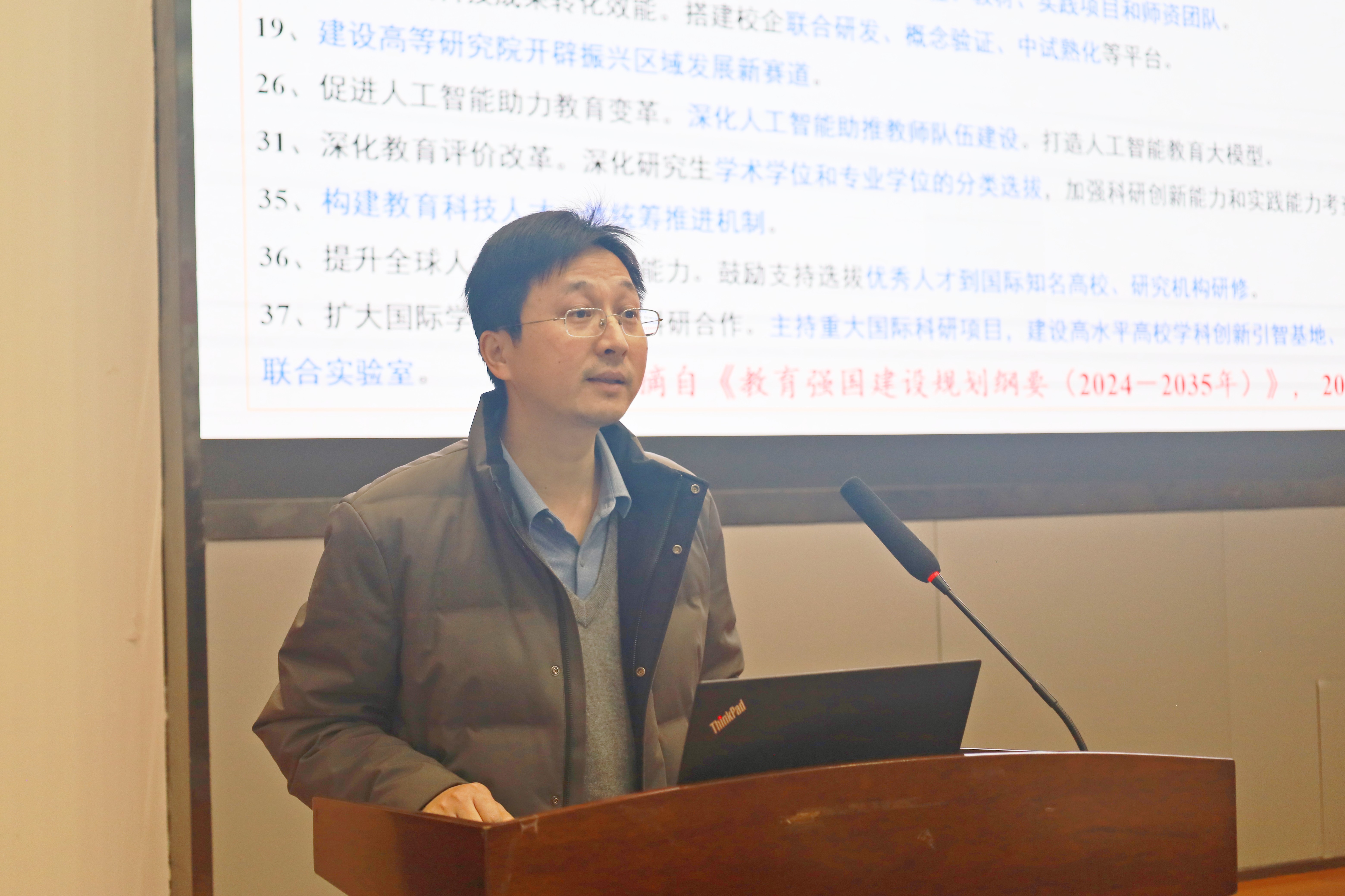 周公博院长代表学院领导班子作2024年度工作总结汇报。他指出,过去一年,在学校党委和行政的正确领导下,学院扎实推进工作,人才培养、学科建设、师资队伍、科学研究、合作交流等各项工作取得了良好成效。对2025年重点工作计划,他作了题为《党建引领 凝心聚力 抢抓机遇 强本拓新 冲刺第六轮 谋篇“十五五”奋力推进学院高质量发展》的汇报,详细分析了学院各项工作的进展和不足,部署了谋篇“十五五”的总体思路。他希望全体教职工继续凝心聚力,持续推进学科高质量可持续发展,加快推进特色鲜明国内一流研究型学院建设。