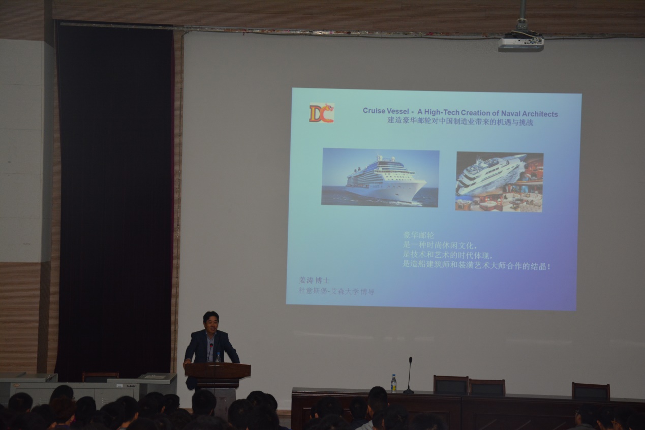 姜涛教授以“建造豪华游轮为中国制造业带来的机遇与挑战”为题,为师生详细介绍当前豪华游轮的发展现状、豪华游轮中存在的技术革新、豪华游轮的核心技术与建造流程管理以及这一产业的经济地位,并且阐述了豪华游轮建造与中国制造2025的密切关系。最后,以此为基础,姜教授分析了中国制造2025与德国工业4.0的区别。报告会的最后,进入了自由提问环节。姜教授根据自己的亲身经验,为同学们一一作答。特别是关于研究生去德国深造等问题,姜教授给大家提出了宝贵的建议,使大家受益匪浅。